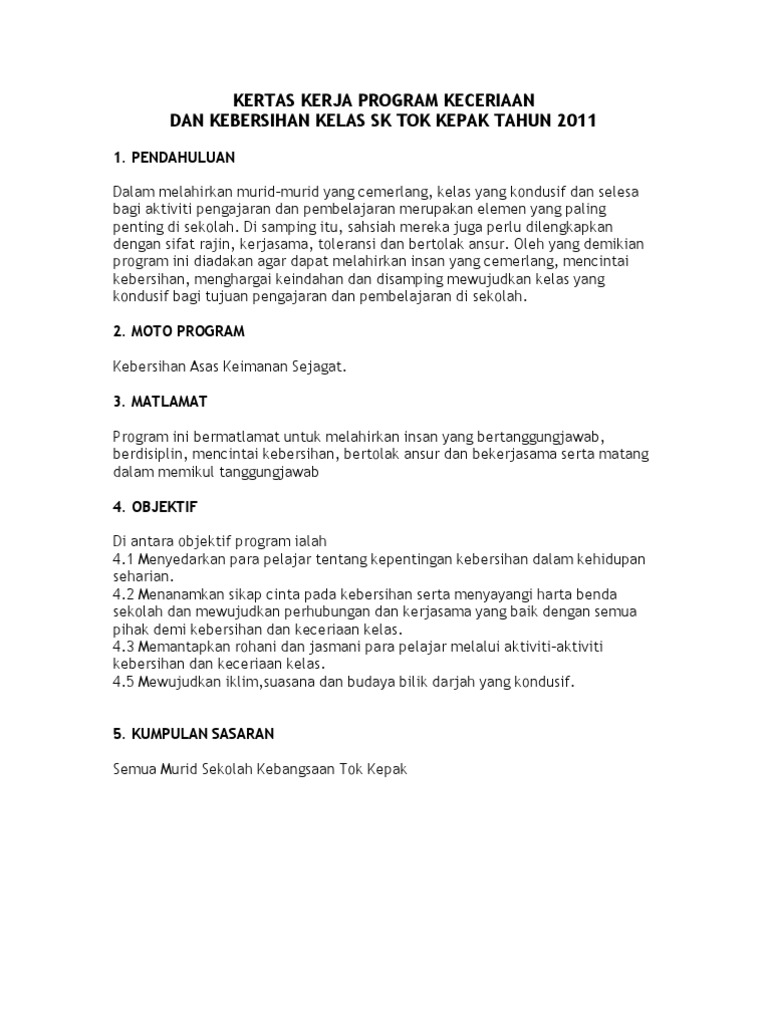 Kertas Kerja Pertandingan Kebersihan Dan Keceriaan Kelas Pdf Free Download